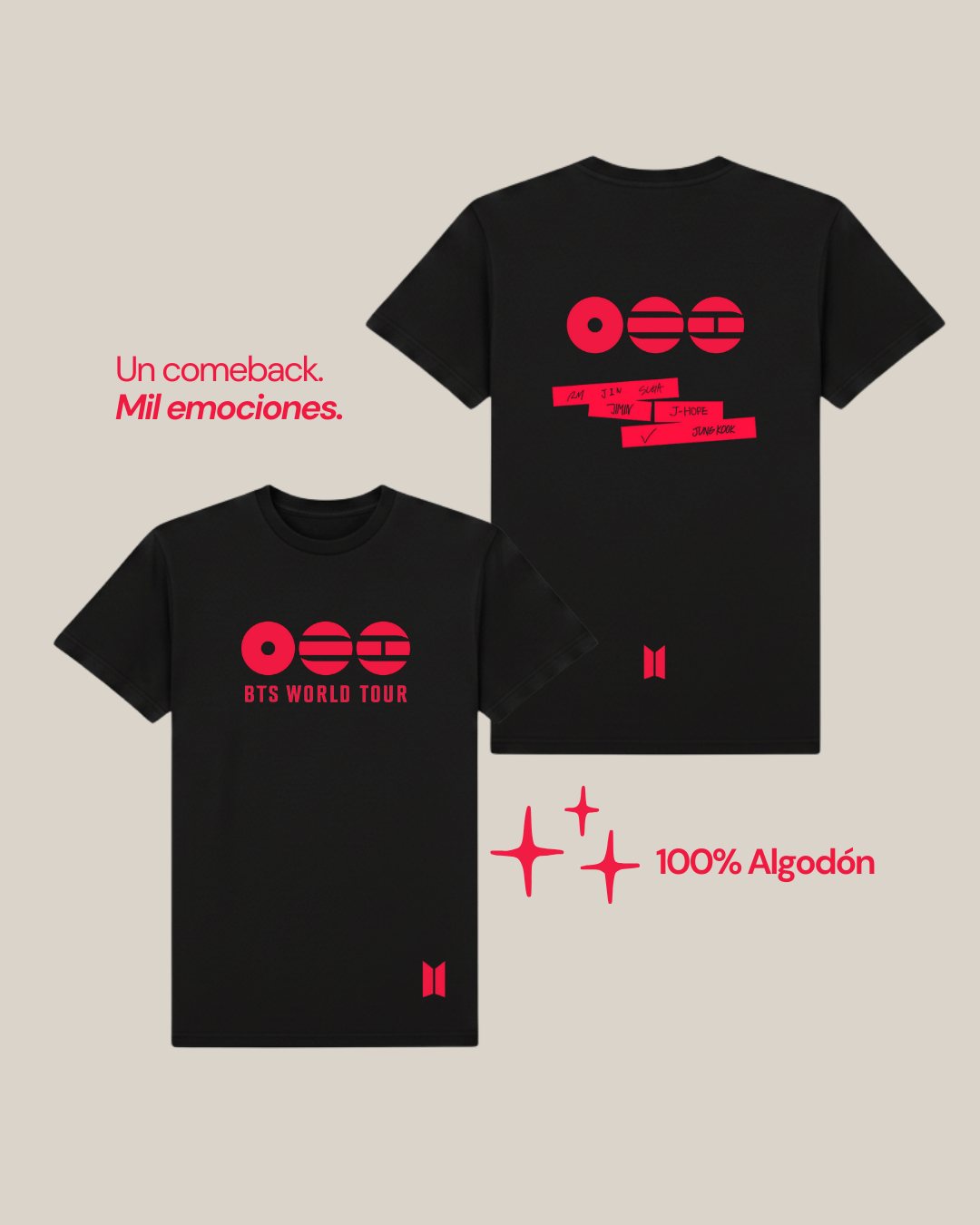 Un diseño minimal, pensado para Army y fans del universo BTS que viven cada etapa con intensidad y orgullo. Disponible en colores clásicos y versión mineral wash para un look más statement.